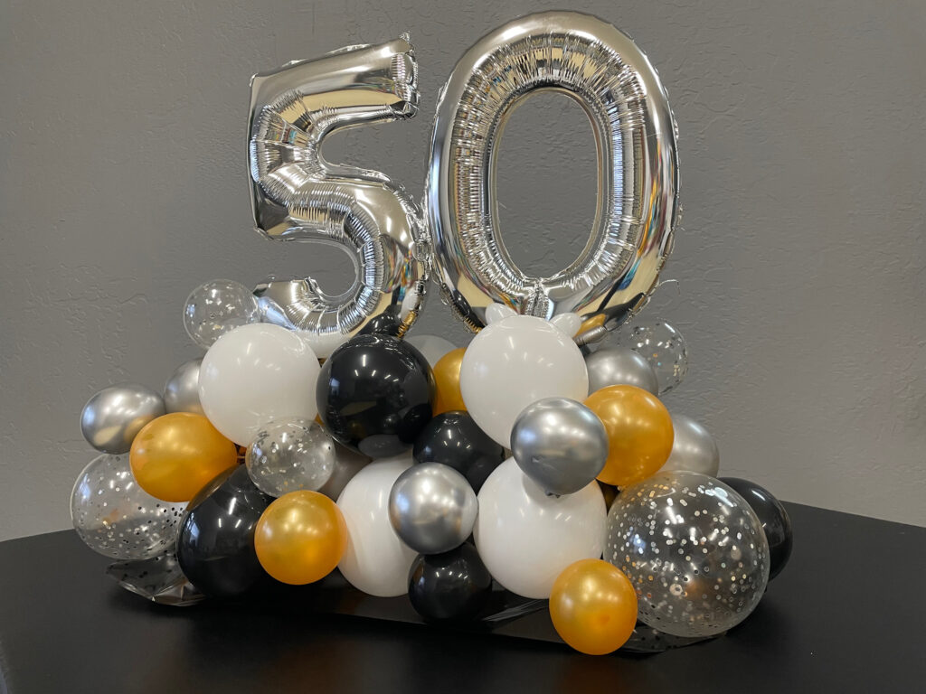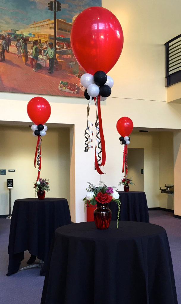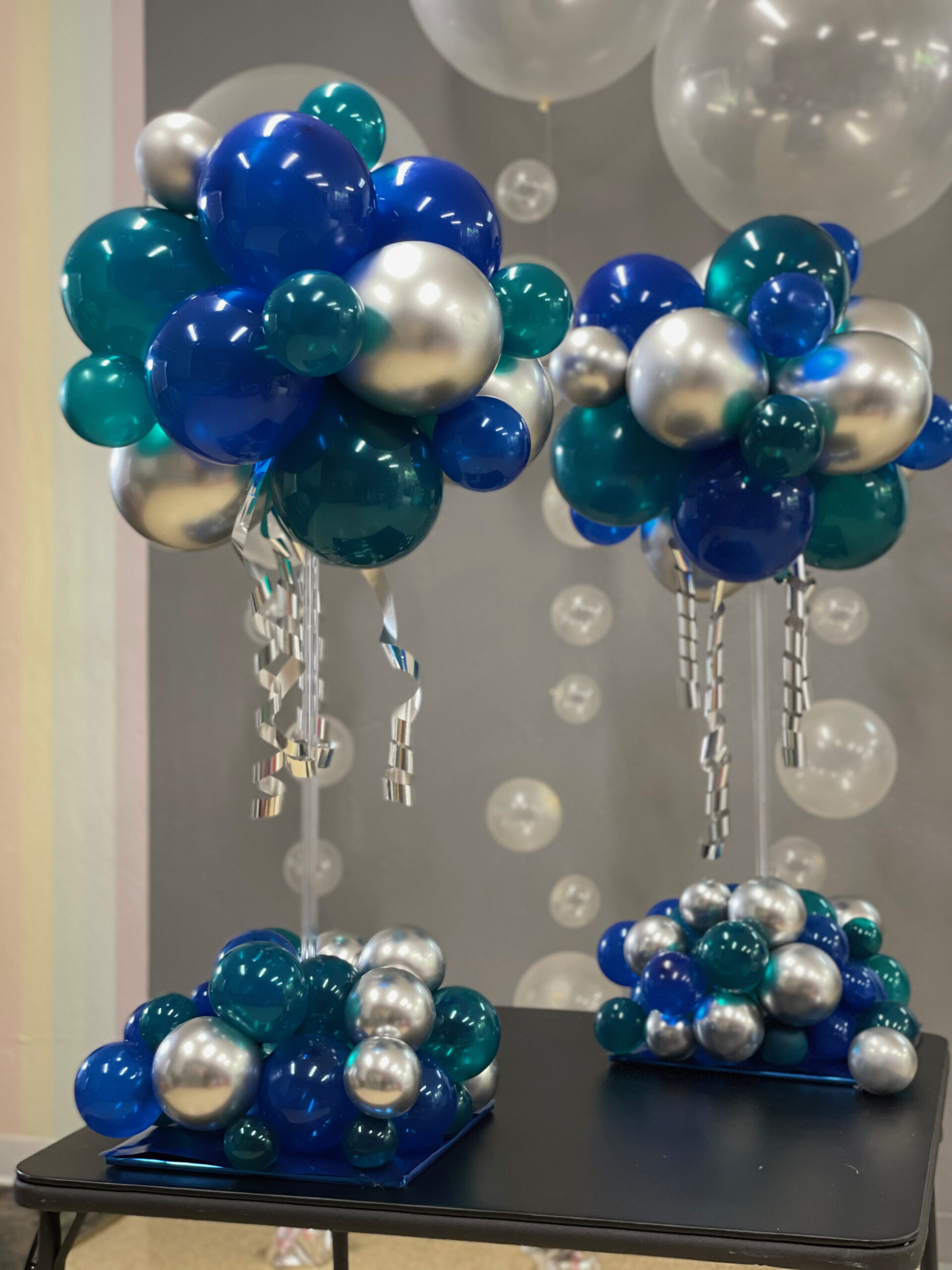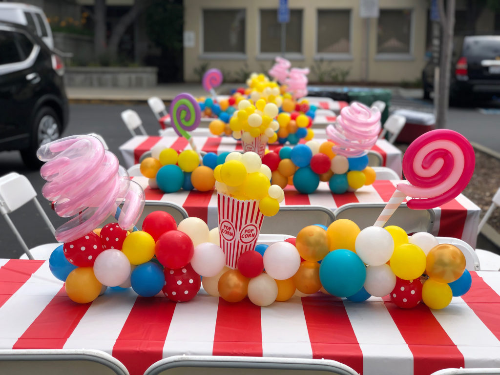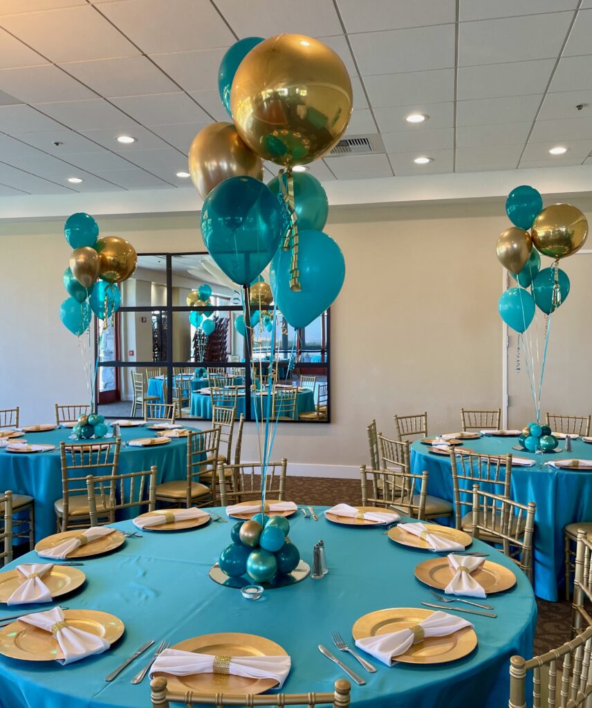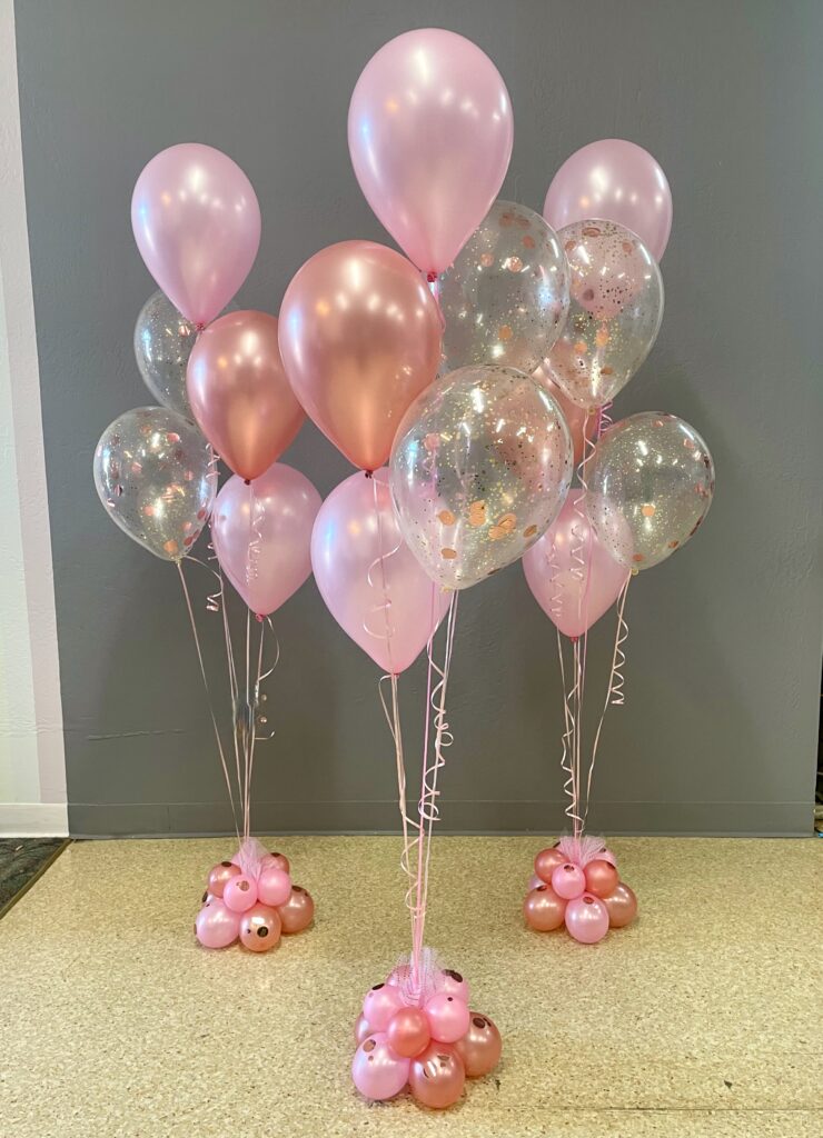 Centerpieces From simple to elaborate, our centerpieces are custom made especially for your event. 3 Balloon $15 ea 5 Balloon + mini puffball base $45 ea 5 Balloon Confetti with mini puffball base $60 ea 24″ Rounds $40 ea 3′ Bubble $75 30″ Confetti, Fringe & LED’s $100 ea Gold Orb + 5 Balloon $45 ea Jumbo 16″ with Double Collar $25 ea Gold Orb + 5 Balloon with mini puffball base $65 ea Organic Topiary Centerpiece $100 ea Pink Topiary Puffballs $115 ea Puffball with Curly Q’s $70 ea Smiley Mini Puffball $25 ea Table Top Animal Sculptures $50 ea Carnival Table Runner $135 ea Table Top 16 Display $150 Table Top 90 Display + Cupcake $150 Table Top 50 Display $125