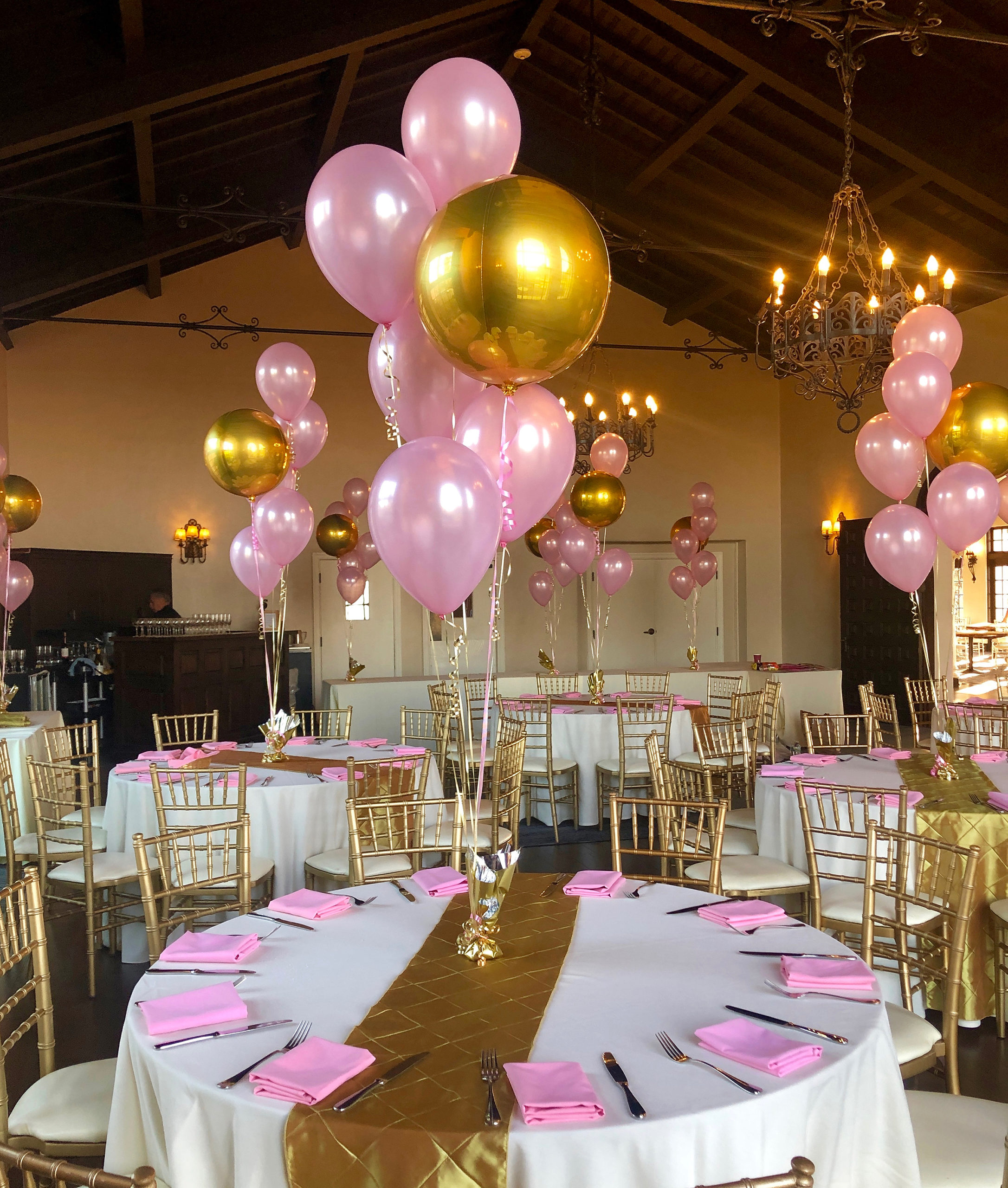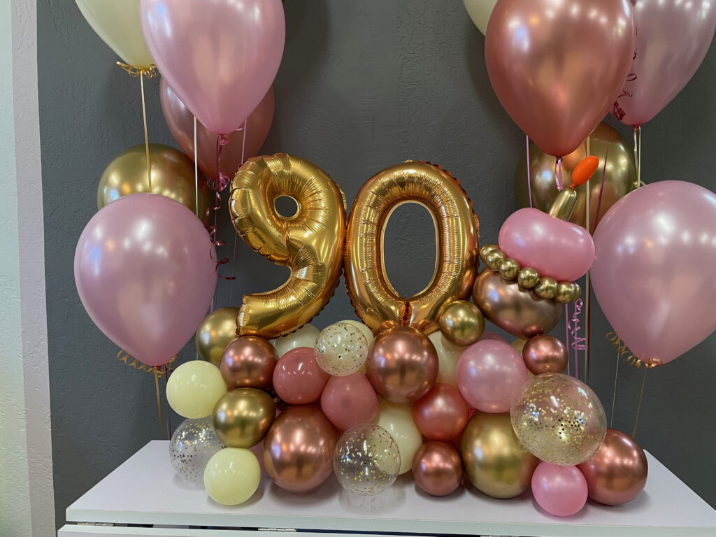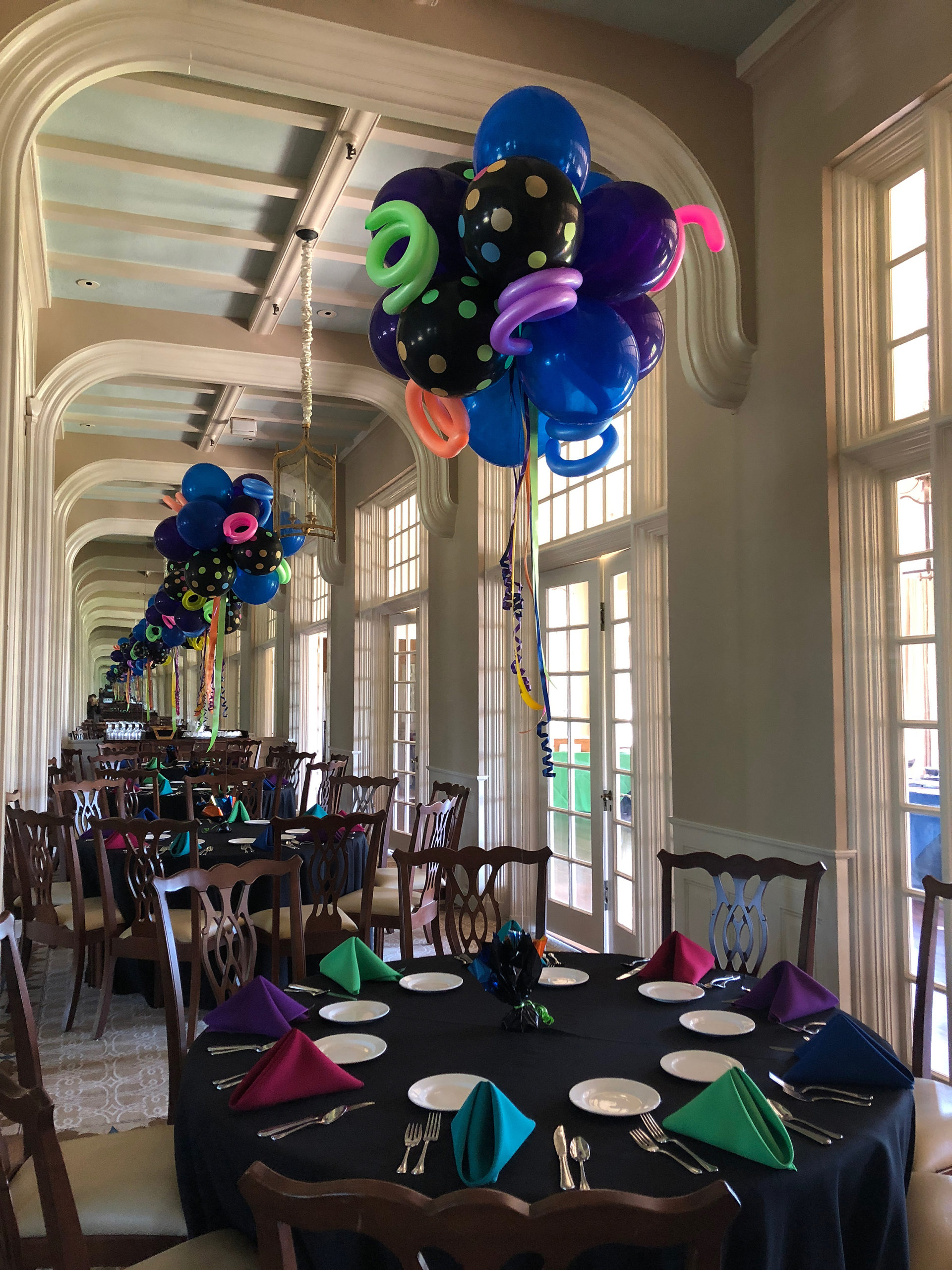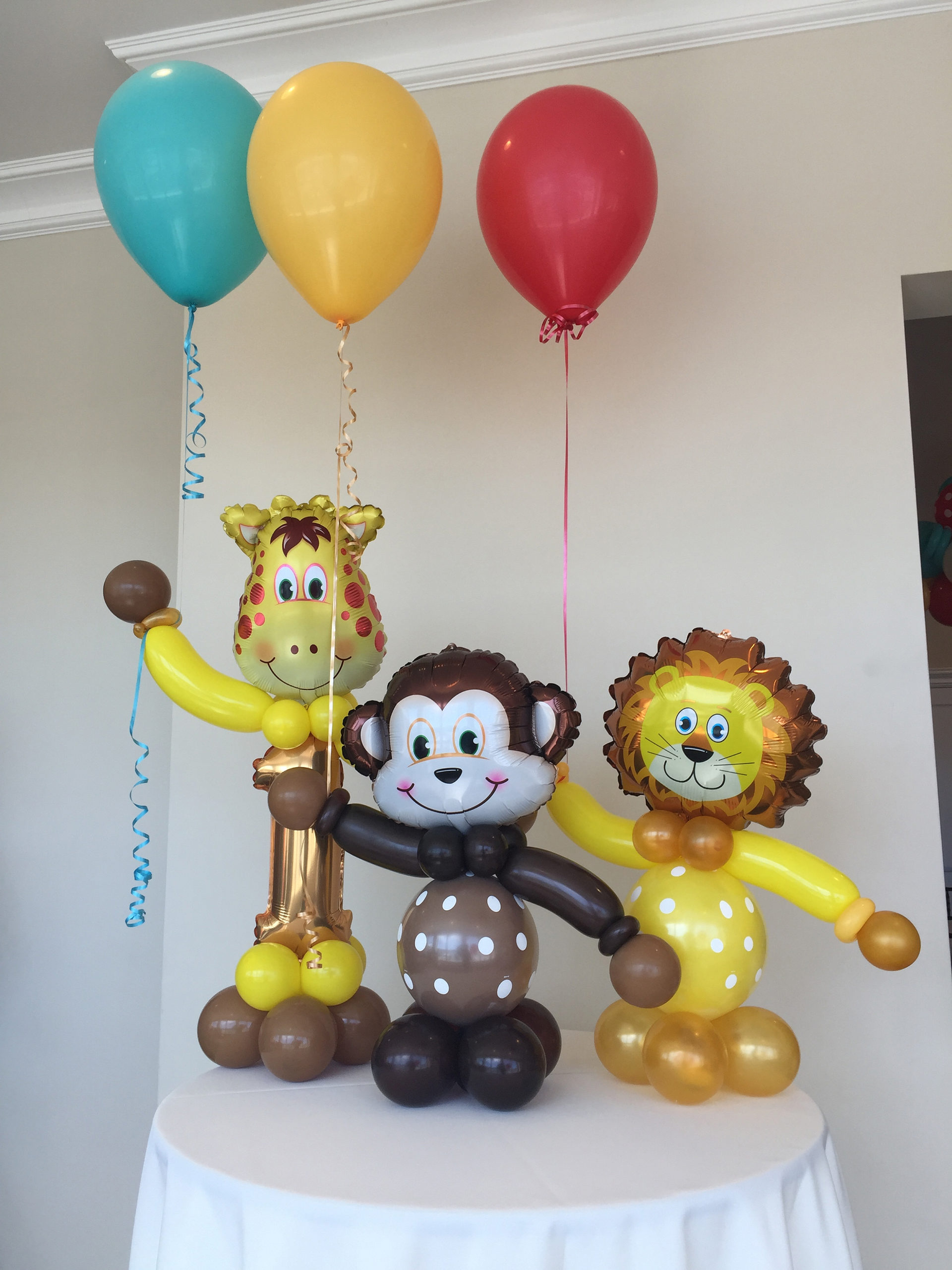 Centerpieces From simple to elaborate, our centerpieces are custom made especially for your event. 3 Balloon $15 ea 5 Balloon + mini puffball base $45 ea 5 Balloon Confetti with mini puffball base $60 ea 24″ Rounds $40 ea 3′ Bubble $75 30″ Confetti, Fringe & LED’s $100 ea Gold Orb + 5 Balloon $45 ea Jumbo 16″ with Double Collar $25 ea Gold Orb + 5 Balloon with mini puffball base $65 ea Organic Topiary Centerpiece $100 ea Pink Topiary Puffballs $115 ea Puffball with Curly Q’s $70 ea Smiley Mini Puffball $25 ea Table Top Animal Sculptures $50 ea Carnival Table Runner $135 ea Table Top 16 Display $150 Table Top 90 Display + Cupcake $150 Table Top 50 Display $125