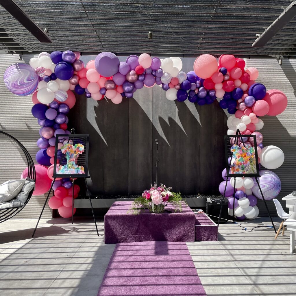 Meandering, arching, bubbling garlands enhance the space while creating a ambiance that invites a good time to happen. Balloon Garlands are custom made installations. Contact us to find out more information.