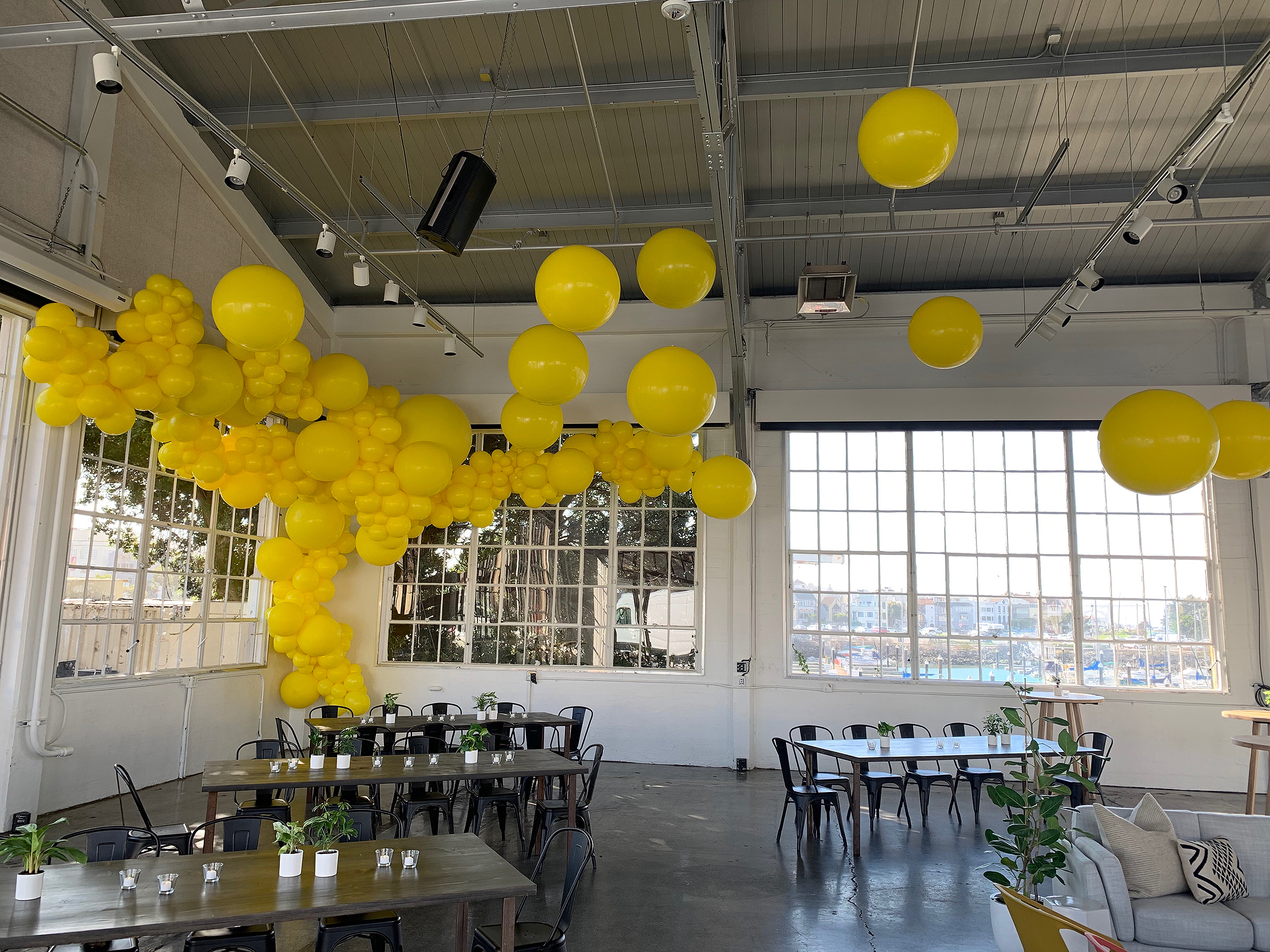 Meandering, arching, bubbling garlands enhance the space while creating a ambiance that invites a good time to happen. Balloon Garlands are custom made installations. Contact us to find out more information.