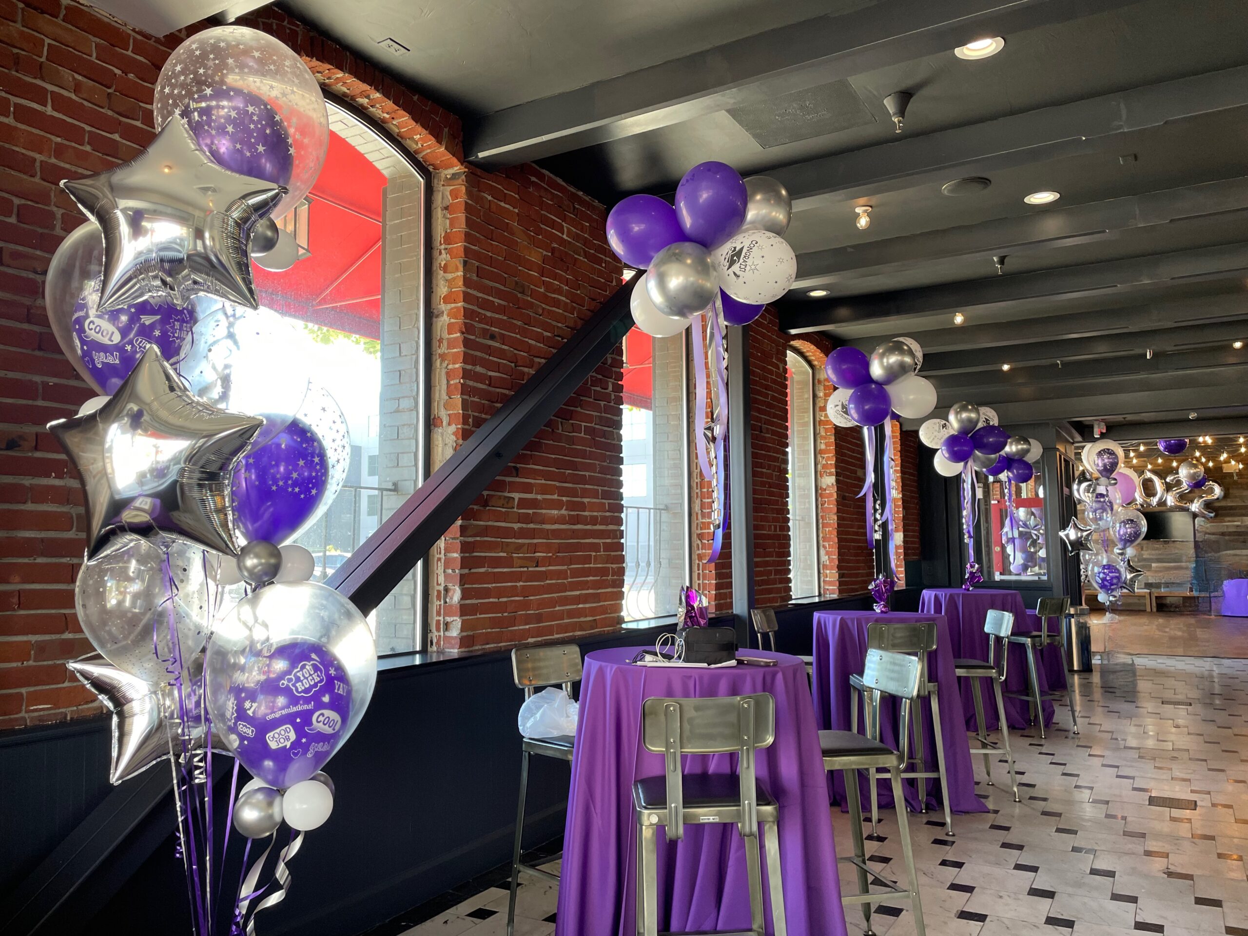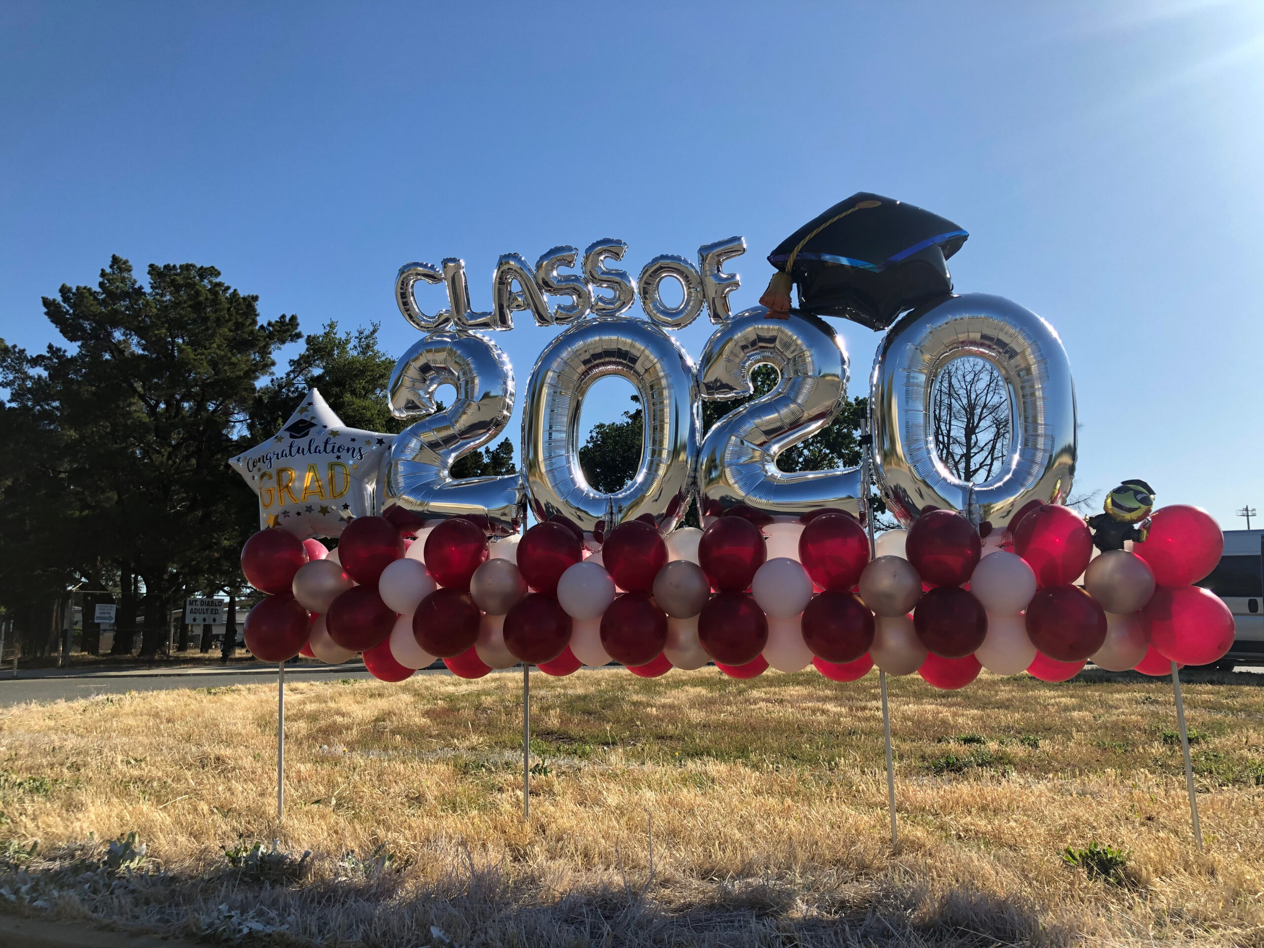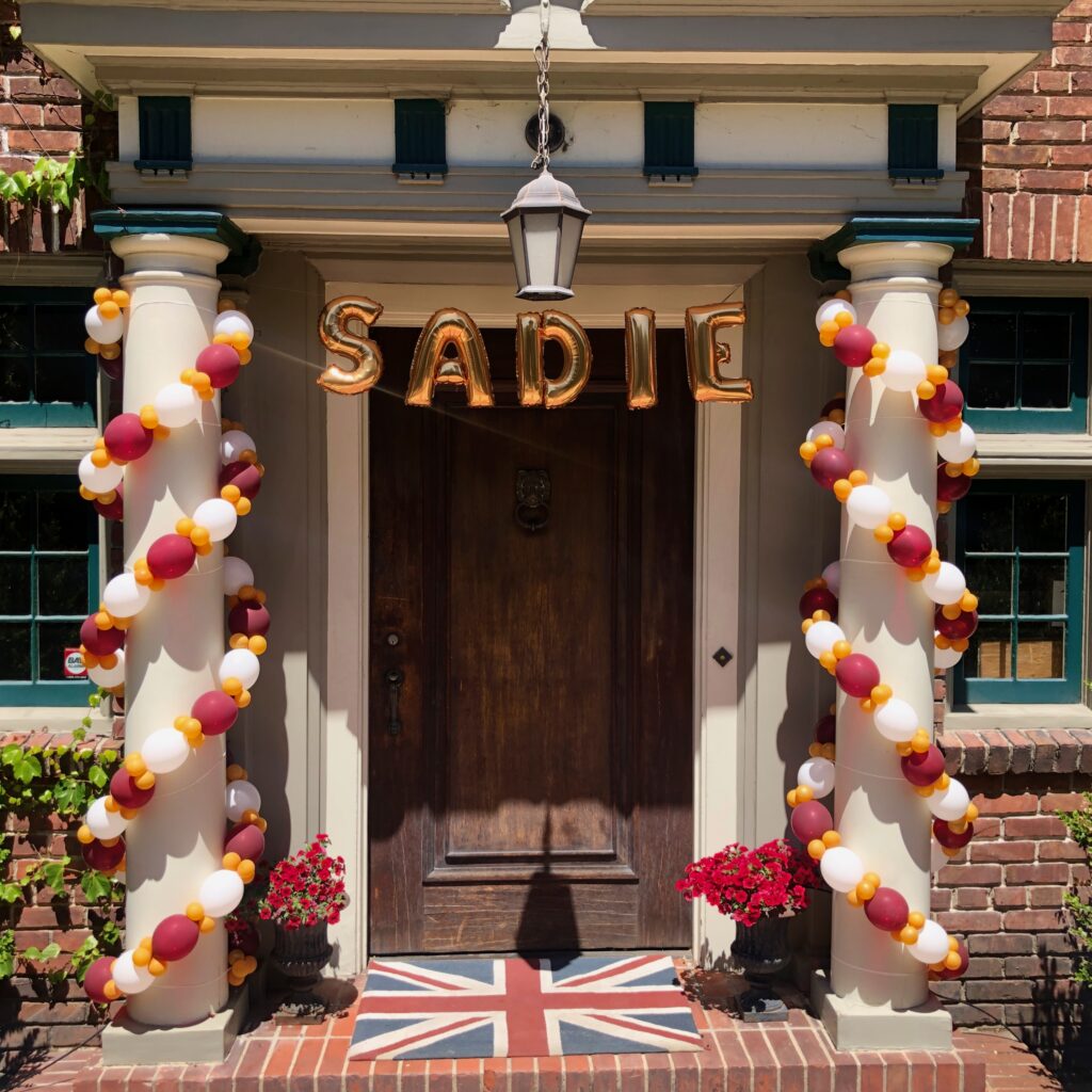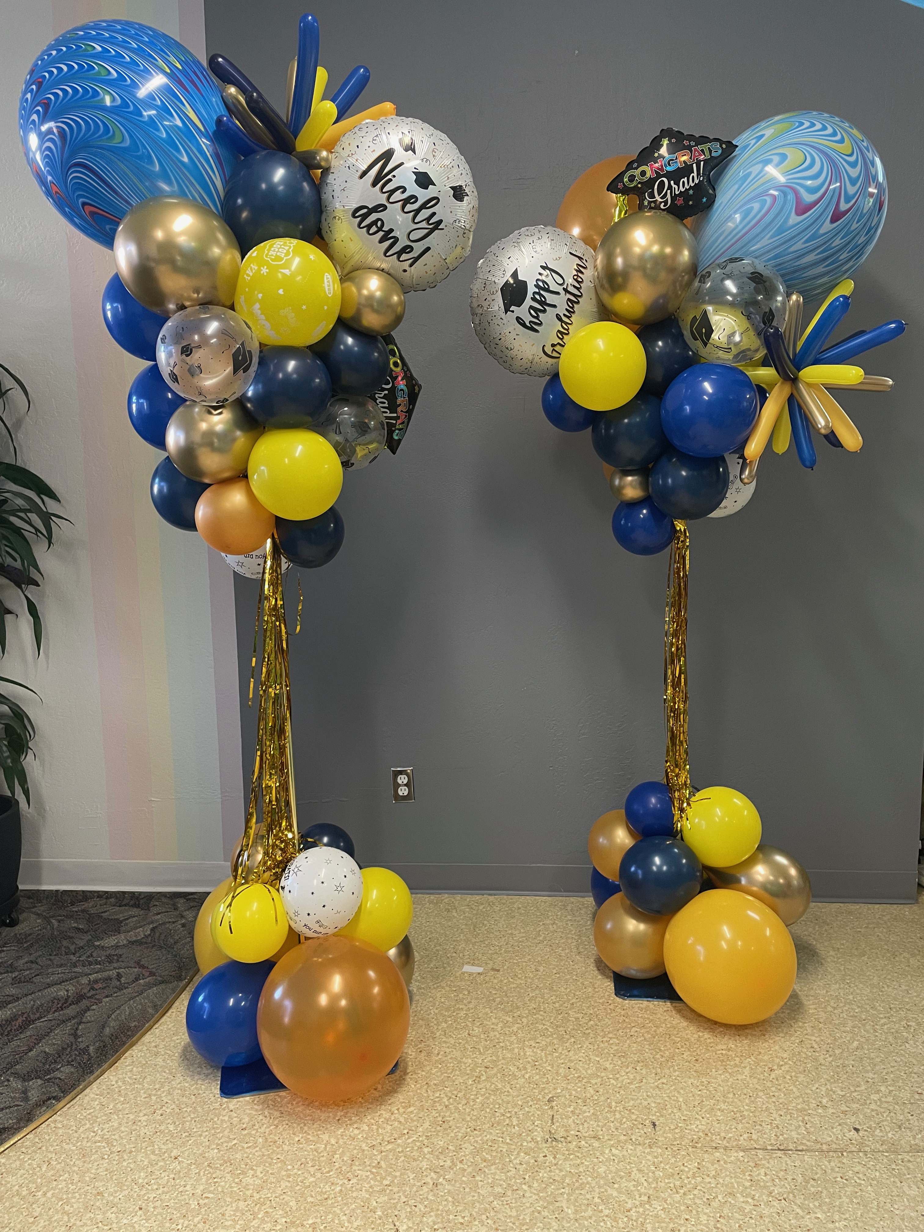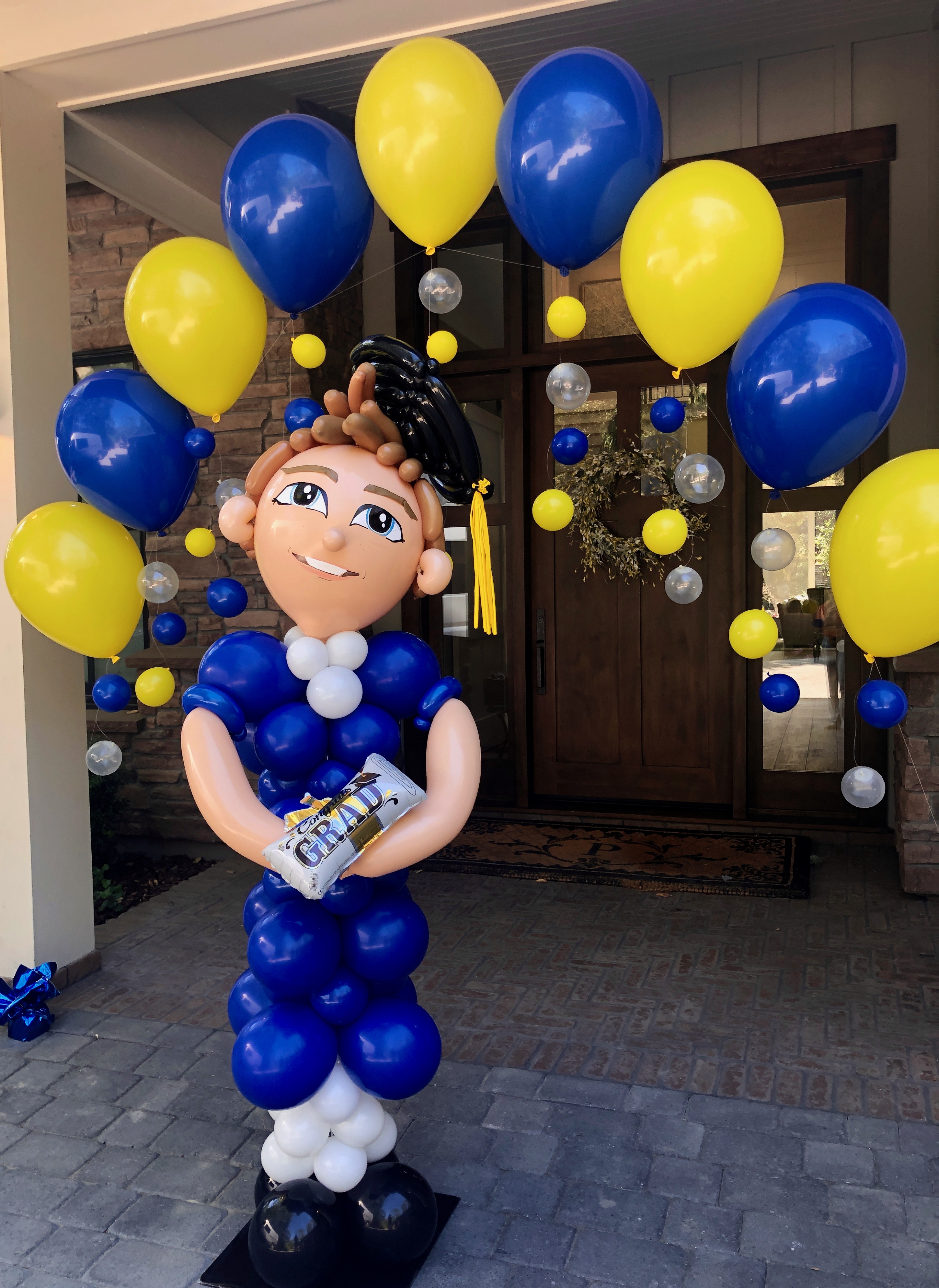 Full Organic Number Arch $600Gold Grad Party Posts $150 eachGolden Grad Garland $350Double Bubble Star Spray $125 + Puffball Centerpieces $35 eachPurple Grad Party Posts $150 eachPurple + White Grad CelebrationCool Grad Bouquets $95 eachHappy Bday Graduate Bunch $100Standard Graduation Bouquets $85 eachDouble Grad Celebration Arch with Number $450Grad Pillar Entrance with Name Classic Walk Through Arch $350Deluxe Graduation Arch $165Puffball Grad CenterpieceCongrats Grad PostsGrad Number Set Freestanding $350RedBig Red Numbers with Big Red Balloons $190Class of Graduation Display $325Tent ClustersCelebration CenterpieceMulti Grad Name CelebrationBlue + Yellow Grad Party Posts $150 eachBiotech Grad Display $175Smiley Grad ManBig Smiley Face GraduatesSmiley Grad ColumnPromotion Grad Sculpture $275Female Grad Character Sculpture $325Grad Character SculptureCongrats Grad 40″ HoopRed Carpet Grad ColumnsPatio Cluster with Low Grad CenterpieceShoot for the Stars ColumnOh, The Places You’ll Go!Deluxe Jumbo Arch with Number & DancefloorHappy Grad Pool FloatTable Top Grad BouquetsBig Congrats Grad Bouquet